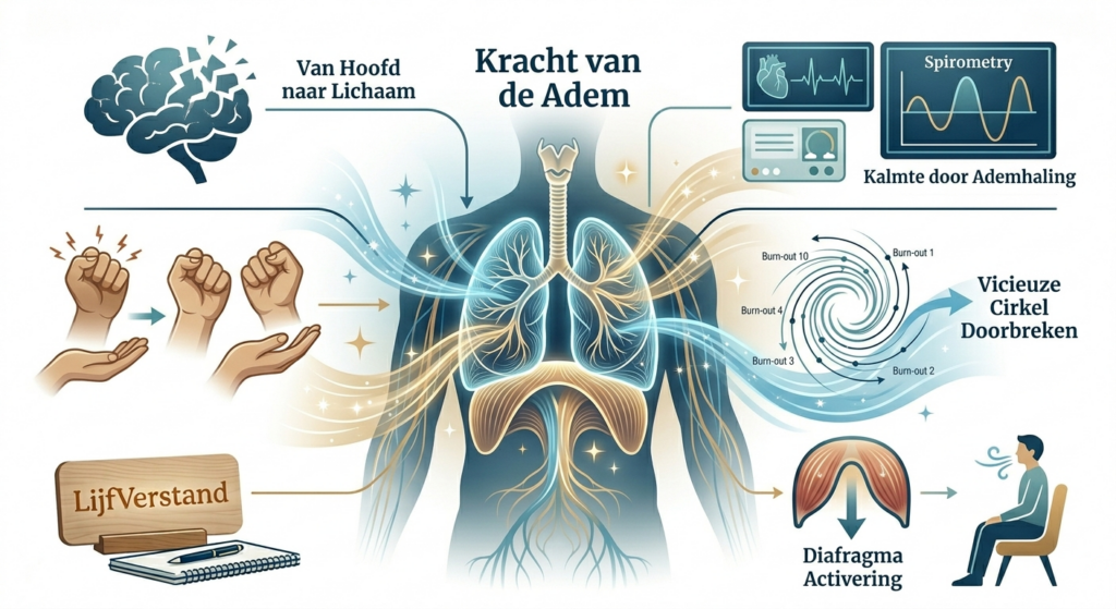Terugkijkend vind ik het onbegrijpelijk dat er in al die jaren bij de psycholoog nooit is gevraagd: ‘Martin, hoe adem jij eigenlijk?’ Nu ik bijna zestig ben, begrijp ik eindelijk de taal van mijn lichaam. Ik ben geen arts, maar een vertaler. Met LijfVerstand wil ik delen wat dertig jaar vallen en opstaan mij hebben geleerd. Niet met zweverige verhalen, maar met nuchter en gezond verstand. Zodat jij leert luisteren naar je lichaam voordat het hard moet schreeuwen — en je niet hoeft te wachten tot die elfde keer.